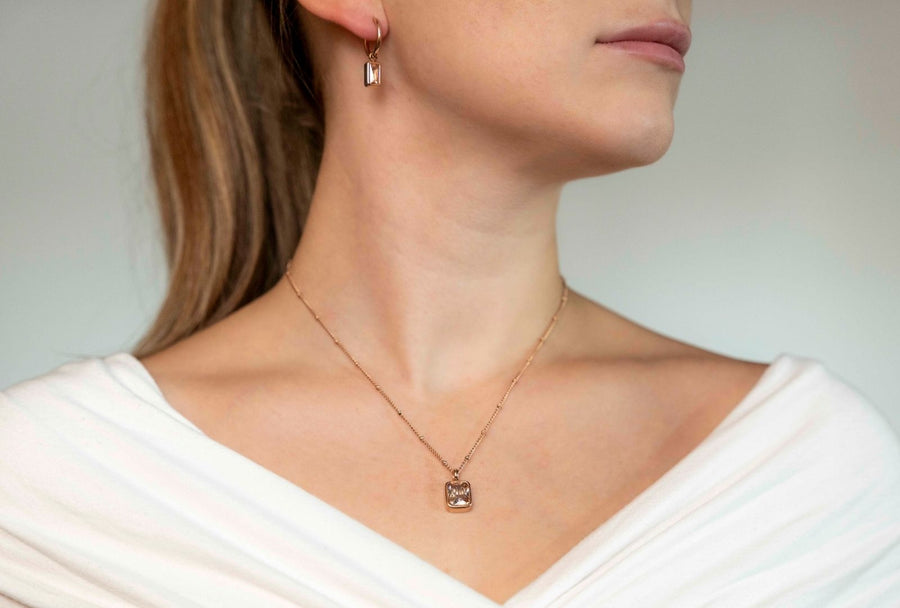 "J'ai reçu les boucles d'oreilles et le collier assorti avec ma pierre de naissance en cadeau et je suis totalement amoureuse. Les deux scintillent discrètement et se complètent parfaitement. Un ensemble qui convient à toutes les occasions et qui a un aspect si élégant !"