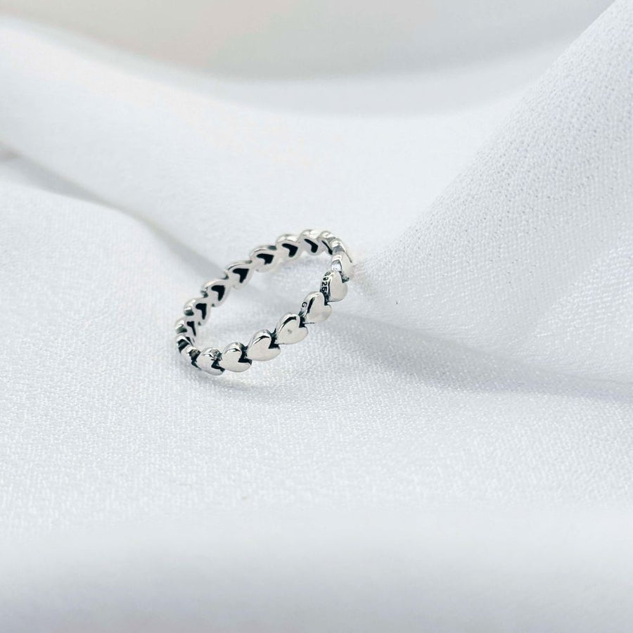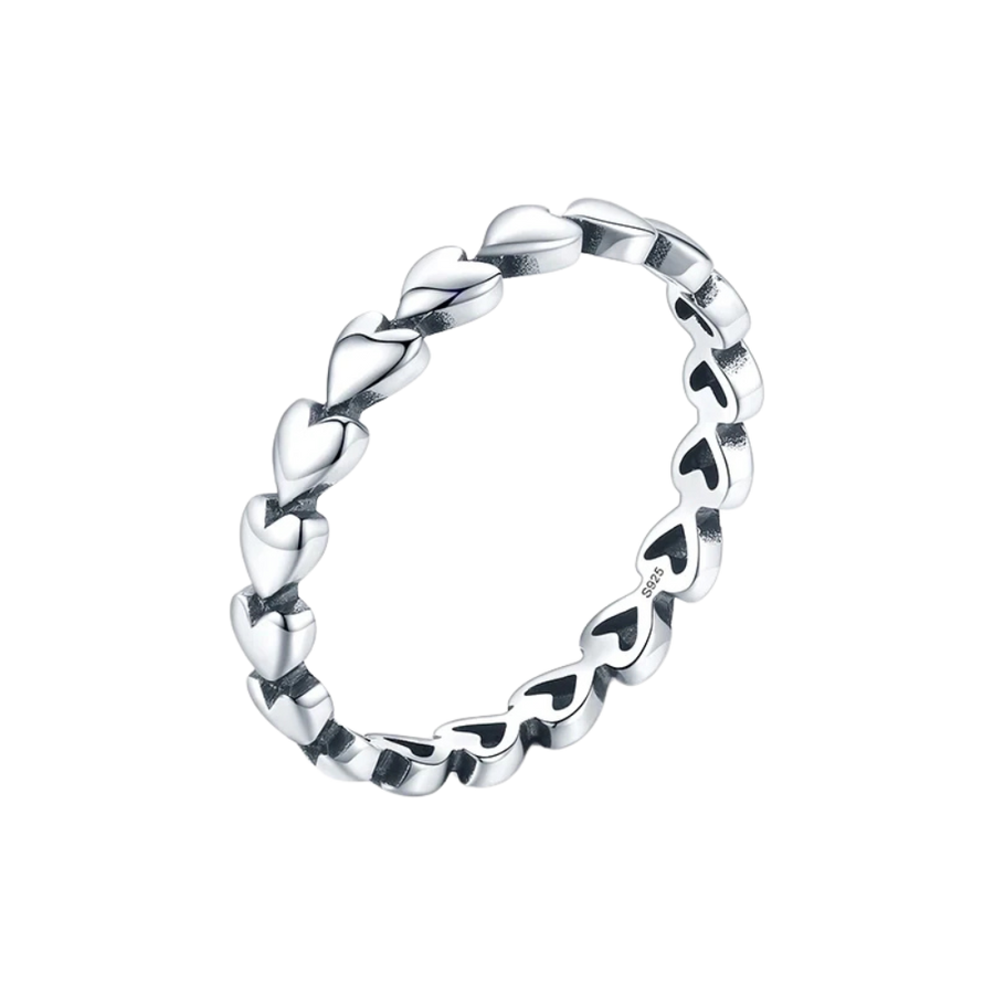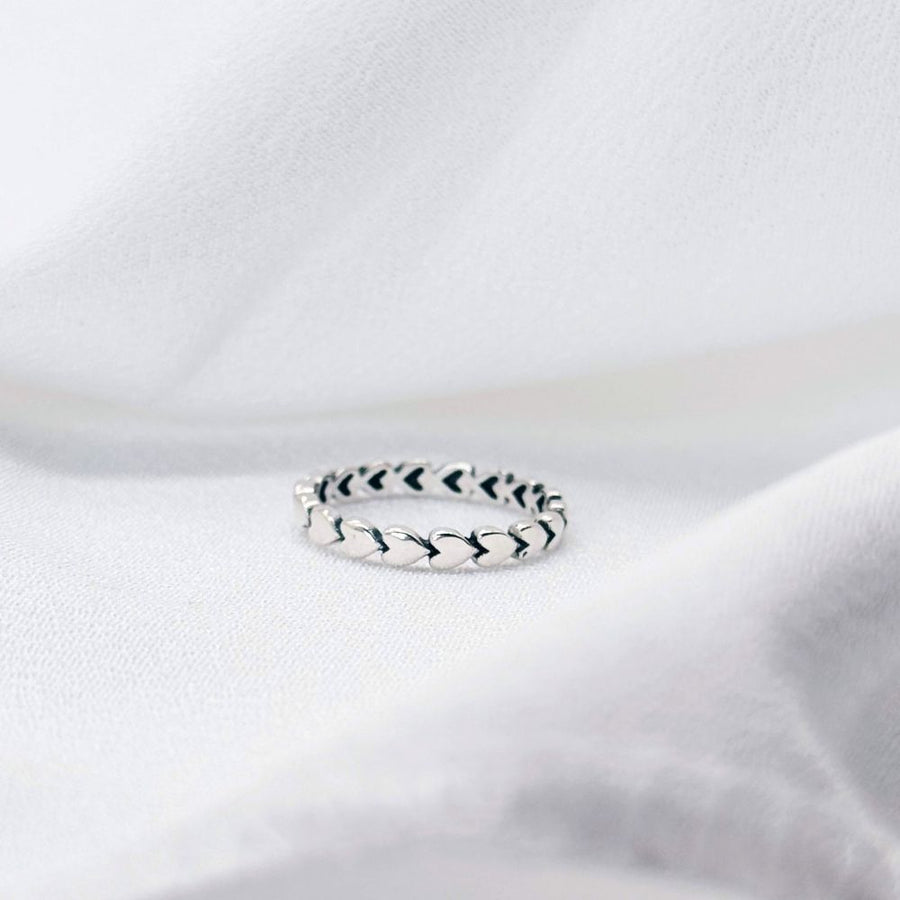 Der Ring ist fein gearbeitet und wirkt trotz der vielen Herzformen nicht überladen. Ich trage ihn seit Wochen täglich und er sieht immer noch makellos aus.