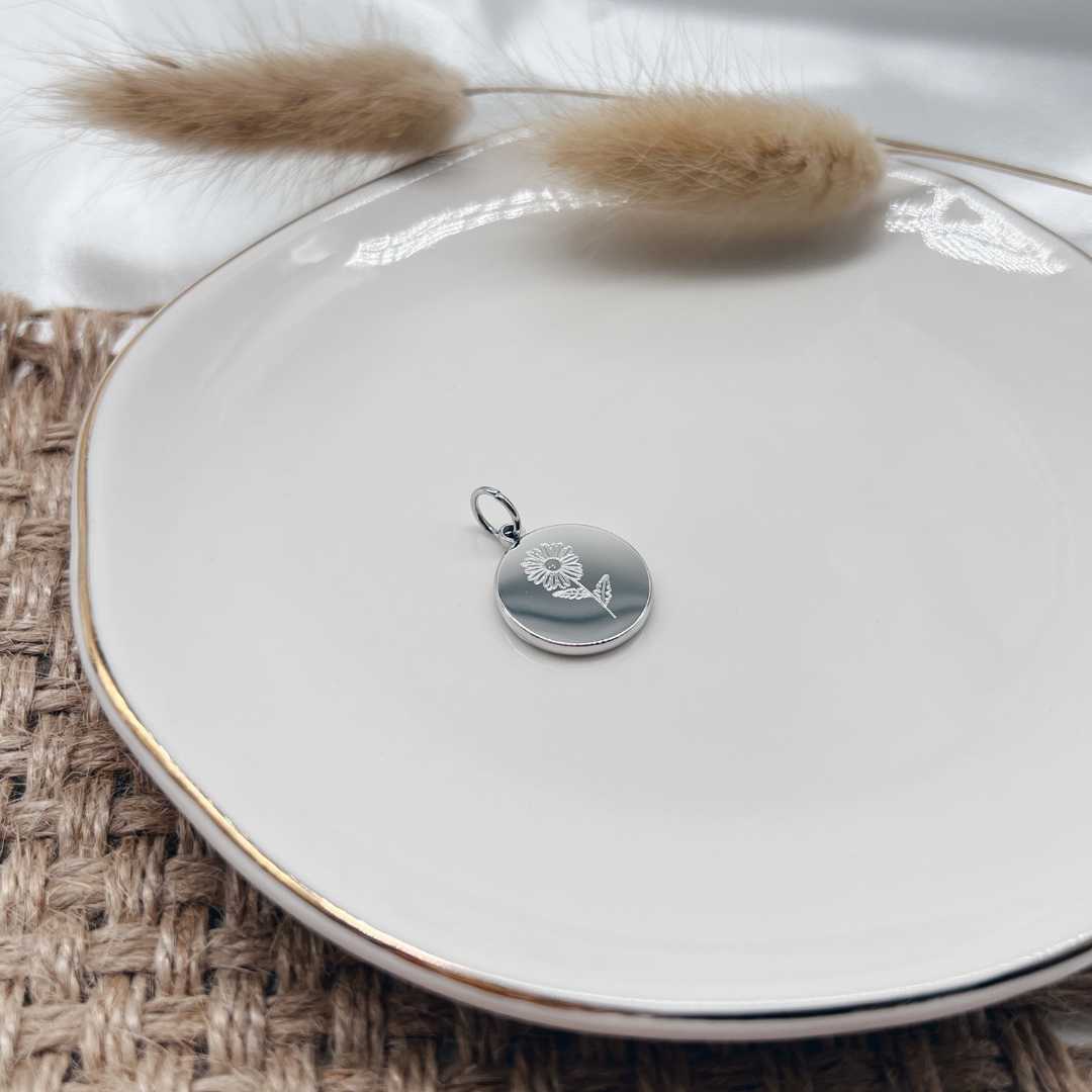 Sehr klare Gravur, hochwertige Kette und wunderbare Frühlingssymbolik.