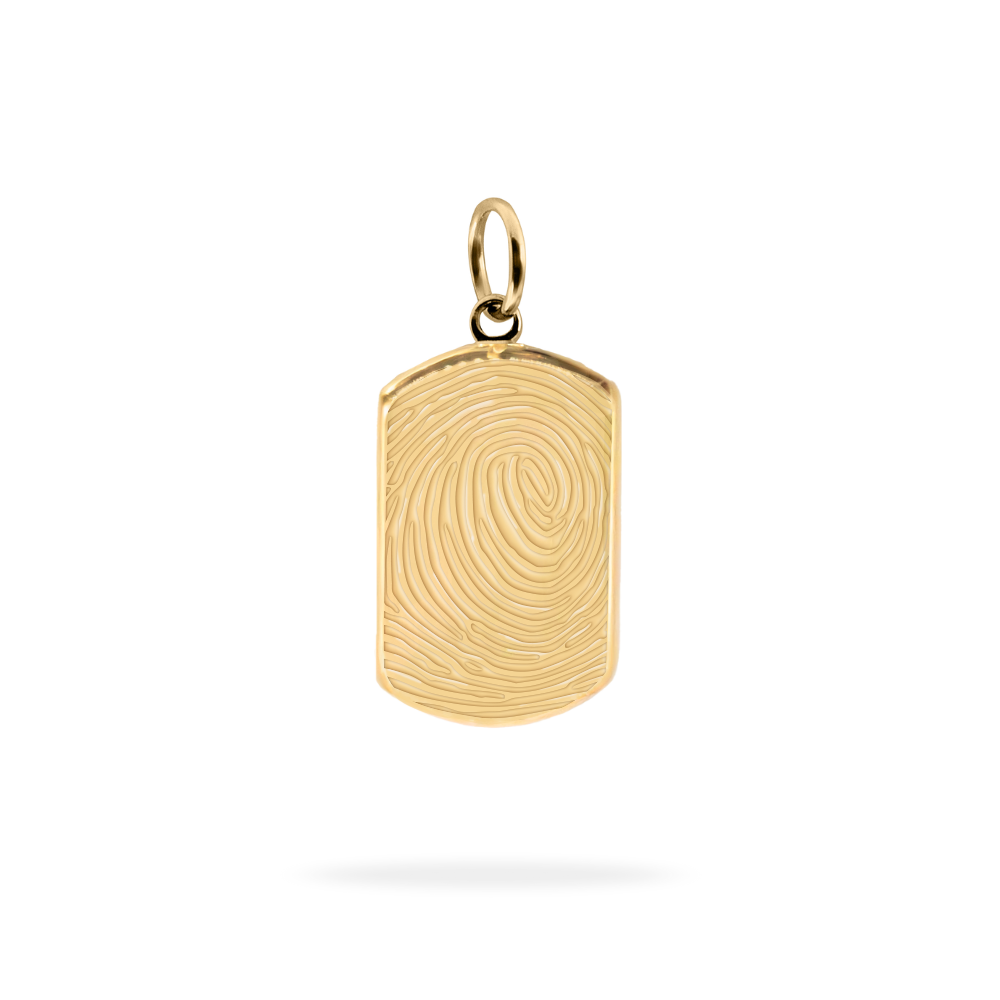 Dieser Fingerprint-Anhänger überzeugt durch sein elegantes, abgerundetes Rechteck-Design und die präzise Gravur eines individuellen Fingerabdrucks. Der edle Anhänger vereint moderne Schlichtheit mit tief empfundener Bedeutung und ist ein besonderes Symbol für Nähe und Erinnerung.