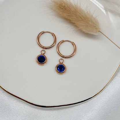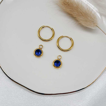 Die Birthstone Hoops für den September strahlen in einem tiefen Blauton, inspiriert von der Farbe des Saphirs. Der rechteckige Schliff bringt die Tiefe und Klarheit des Steins perfekt zur Geltung – ein Symbol für Weisheit, Reinheit und innere Stärke.
